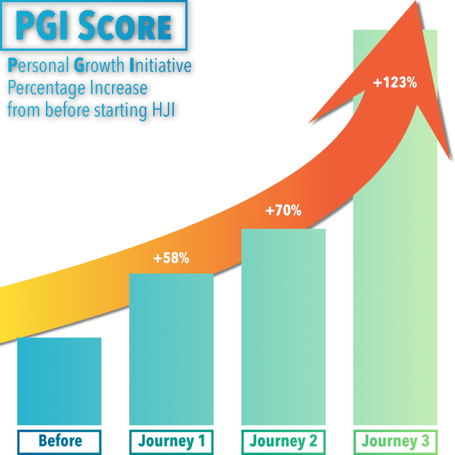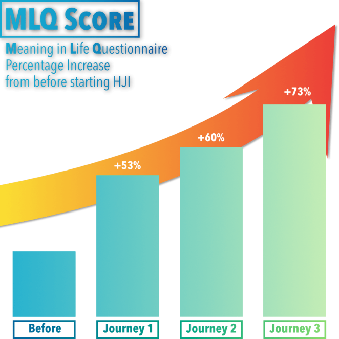 This test predicts a broad variety of improvements in: career, relationships, healthy living, and even progress in therapy. Our users' scores rose progressively after each journey.